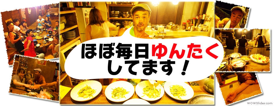 夜はみんなで手作りの美味しい島料理を囲み、食後は満点の星空を見ながら縁側で