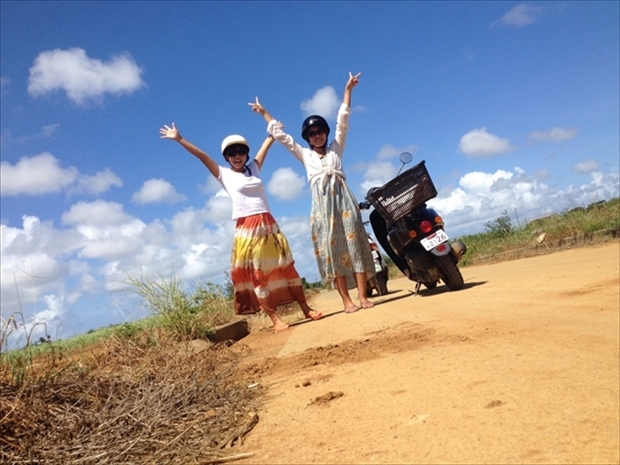 農業が盛んな島なので、沖縄らしいサイトウキビ畑が広がり、その間をのんびりと散歩
